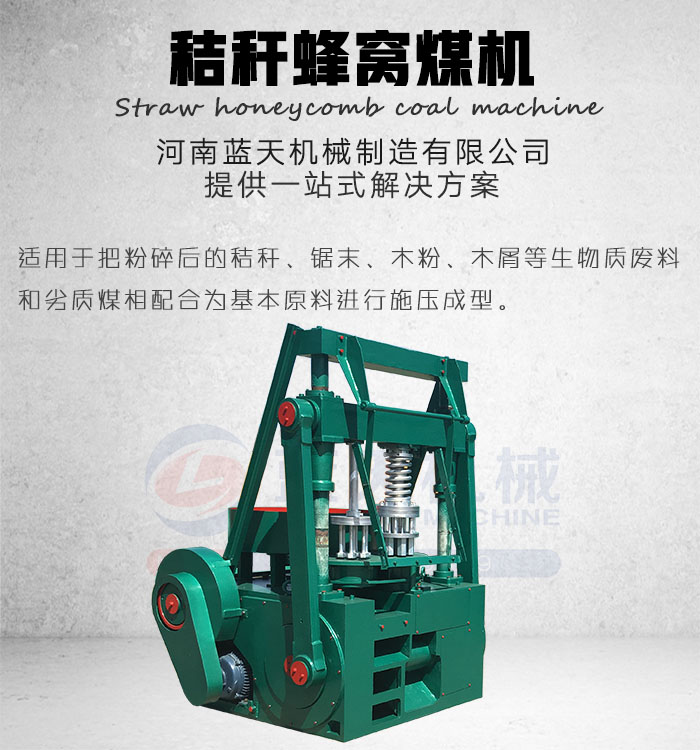 河南藍天機械制造有限公司生產(chǎn)的秸稈蜂窩煤機可根據(jù)各個地區(qū)的煤質(zhì)和燃煤習慣不同,為用戶提供不同的孔徑、孔數(shù)、煤球外徑、動力等技術(shù)參數(shù)設(shè)計特殊規(guī)格的成型模具。為準用戶單獨規(guī)劃、設(shè)計、生產(chǎn)、安裝秸稈蜂窩煤機流水線,秸稈煤、易燃煤的配方與技術(shù),咨詢秸稈蜂窩煤機價格可撥打熱線: