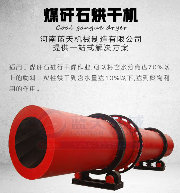 煤矸石是采煤過程和洗煤過程中排放的固體廢物,作為礦業(yè)固體廢物的一種,煤矸石棄置不用,占用大片土地,而煤矸石烘干機(jī)的出現(xiàn)可將其“變廢為寶”,使其產(chǎn)生巨大的利用價(jià)值。河南藍(lán)天機(jī)械制造有限公司生產(chǎn)的煤矸石烘干機(jī)對煤矸石烘干有很好的效果,以其熱效率高、生產(chǎn)能力大、使用壽命長等優(yōu)勢被國內(nèi)外用戶所喜愛。煤矸石是采煤過程和洗煤過程中排放的固體廢物,作為礦業(yè)固體廢物的一種,煤矸石棄置不用,占用大片土地,而煤矸石烘干機(jī)的出現(xiàn)可將其變廢為寶,使其產(chǎn)生巨大的利用價(jià)值。河南藍(lán)天機(jī)械制造有限公司生產(chǎn)的煤矸石烘干機(jī)對煤矸石烘干有很好的效果,以其熱效率高、生產(chǎn)能力大、使用壽命長等優(yōu)勢被廣大用戶所喜愛,是建材設(shè)備中收益回收快的設(shè)備,設(shè)備型號齊全、工作能力強(qiáng),值得投資。