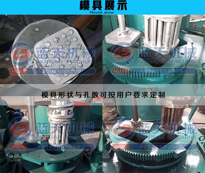 蜂窩炭成型機(jī)方便搭配多種不同規(guī)格模具,通過調(diào)換模具能生產(chǎn)出直徑在270mm以下、高度120mm以下,不同規(guī)格的蜂窩炭,可生產(chǎn)圓形、方形、梅花形、扇形、中心有孔無孔等特殊形狀。可以做新型燒烤炭、易燃炭,秸稈煤炭、點(diǎn)火煤,等。