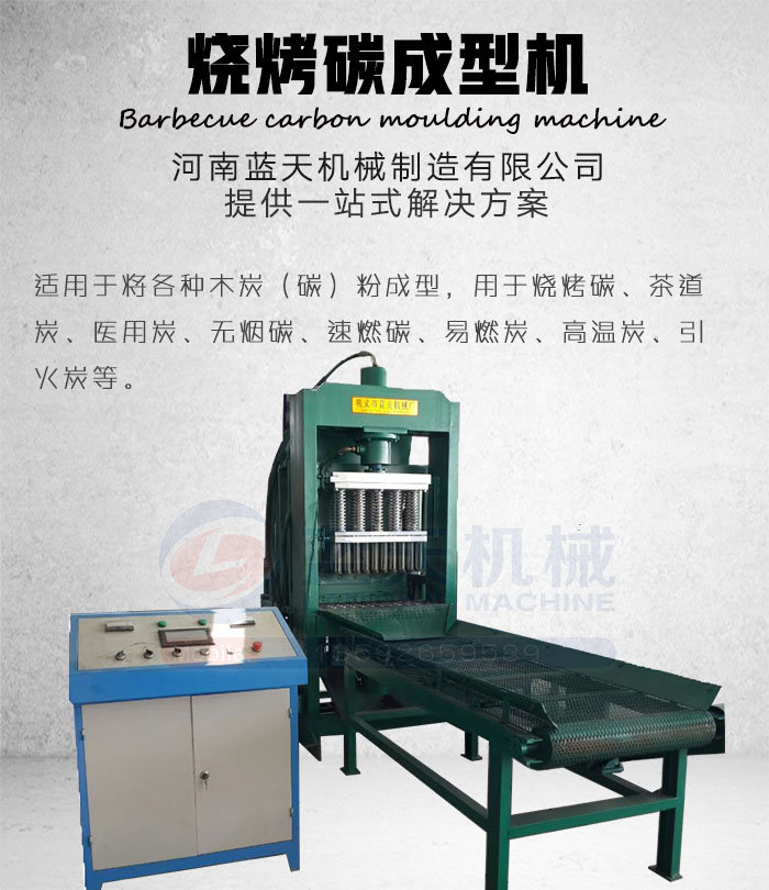 河南藍(lán)天機(jī)械制造有限公司設(shè)計(jì)的燒烤碳成型機(jī),采用上下液壓,上壓120T,下頂120T,因?yàn)閴毫Φ淖饔茫龀鰜?lái)的燒烤碳密度大,無(wú)煙、易燃,所以也被稱(chēng)為液壓燒烤碳成型機(jī),無(wú)煙燒烤碳成型機(jī),形狀外觀可以根據(jù)用戶(hù)的要求定做。藍(lán)天機(jī)械生產(chǎn)的燒烤碳成型機(jī)主要是針對(duì)碳的特性,將碳粉壓成型。目前新設(shè)計(jì)的液壓燒烤碳成型機(jī),采用了上下同時(shí)施壓,上壓120T,下頂120T,做出來(lái)的燒烤碳密度非常大,滿(mǎn)足不少燒烤餐廳、烤肉店、與戶(hù)外燒烤愛(ài)好者的需求。