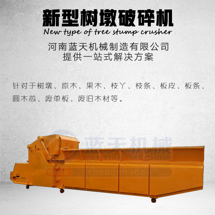 新型樹墩破碎機(jī)是河南藍(lán)天機(jī)械制造有限公司生產(chǎn)的國(guó)內(nèi)環(huán)保新型破碎產(chǎn)品,適用于刨花板、中密度板、木質(zhì)纖維板、造紙、電廠、鍋爐等工業(yè)。