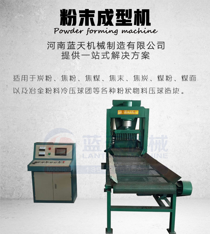 粉末成型機(jī)用途廣泛,可壓制如炭粉、礦粉、干粉、石墨粉、陶瓷、炭黑、焦末、水泥灰、煤粉、粉煤灰、冶煉渣、廢礦渣、廢陶粒渣等粉末狀或難以成型的散裝物料。主要用于煤炭、建材、化工、食品、電子、粉末冶金等行業(yè)。粉末成型機(jī)是河南藍(lán)天機(jī)械制造有限公司應(yīng)廣大新老用戶的需要,在原有成型機(jī)基礎(chǔ)上總結(jié)生產(chǎn)過(guò)程中的實(shí)踐經(jīng)驗(yàn),同時(shí)吸取了國(guó)外同類型機(jī)種的優(yōu)點(diǎn),新研制生產(chǎn)的全自動(dòng)粉末成型機(jī)。“藍(lán)天”全自動(dòng)粉末成型機(jī)擁有液壓傳動(dòng),PLC電控系統(tǒng),操作簡(jiǎn)單易懂,壓力大,廣泛用于壓制難以成型的各種粉狀物料,如金屬粉,因此也被稱呼為金屬粉末成型機(jī)。粉末成型機(jī)整機(jī)結(jié)構(gòu)簡(jiǎn)單方便維護(hù)與維修,同時(shí)投資成本相比同類生產(chǎn)線要低的多,在市場(chǎng)上產(chǎn)生了強(qiáng)大的競(jìng)爭(zhēng)力。